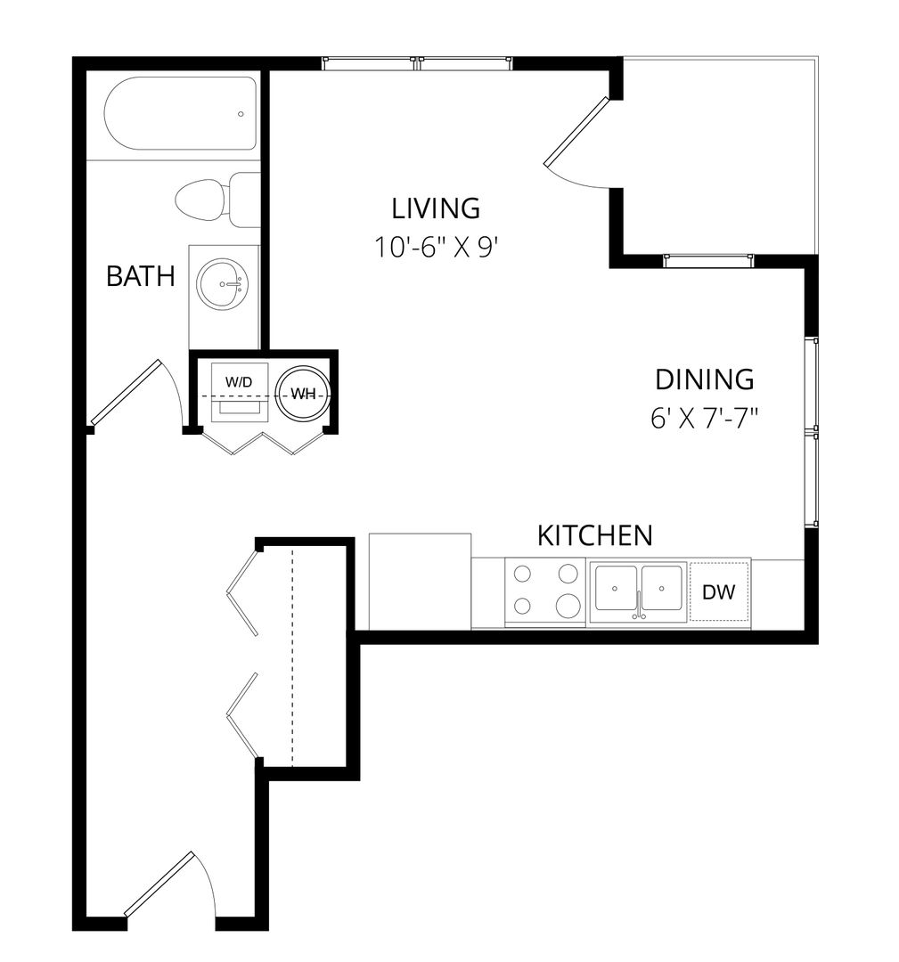 Choose from our stunning studio, one-, and two-bedroom apartments, thoughtfully designed to meet your needs. Each home boasts stylish features like stainless steel appliances, in-unit laundry, and soaring ceilings that create a bright and open atmosphere.
